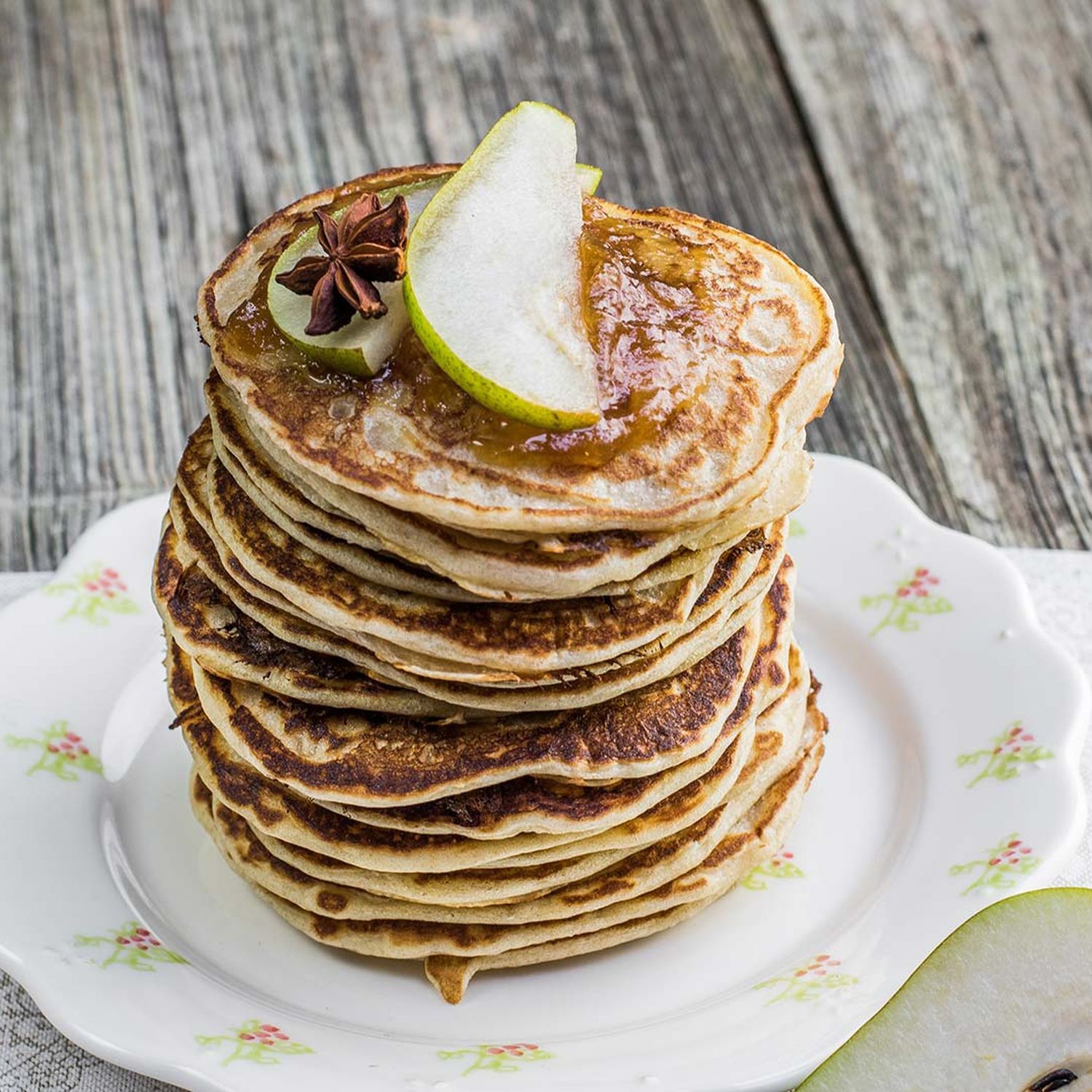 Quinoa Pancakes Mit Frischem Birnen Kompott Hofer Rezeptwelt